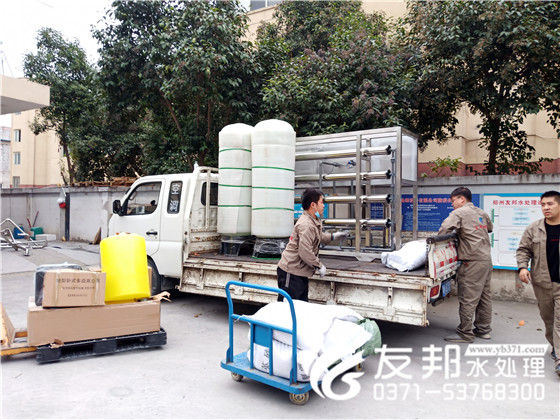 利用离子树脂的交换性能,除去原水中的钙镁离子,以达到防止后继设备结生水垢的影响,但是操作起来费工,费料。现在改为加药系统直接向里添加阻垢剂。