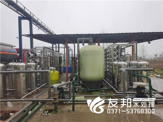 原水箱→增压泵→多介质过滤器→活性炭过滤器→保安过滤器→高压泵→一级反渗透→高压泵→二级反渗透→