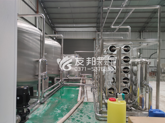 食品加工用水设备能将自来水通过合理的预处理系统,去除水中颗粒杂质、胶体、余氯以后,再利用反渗透技