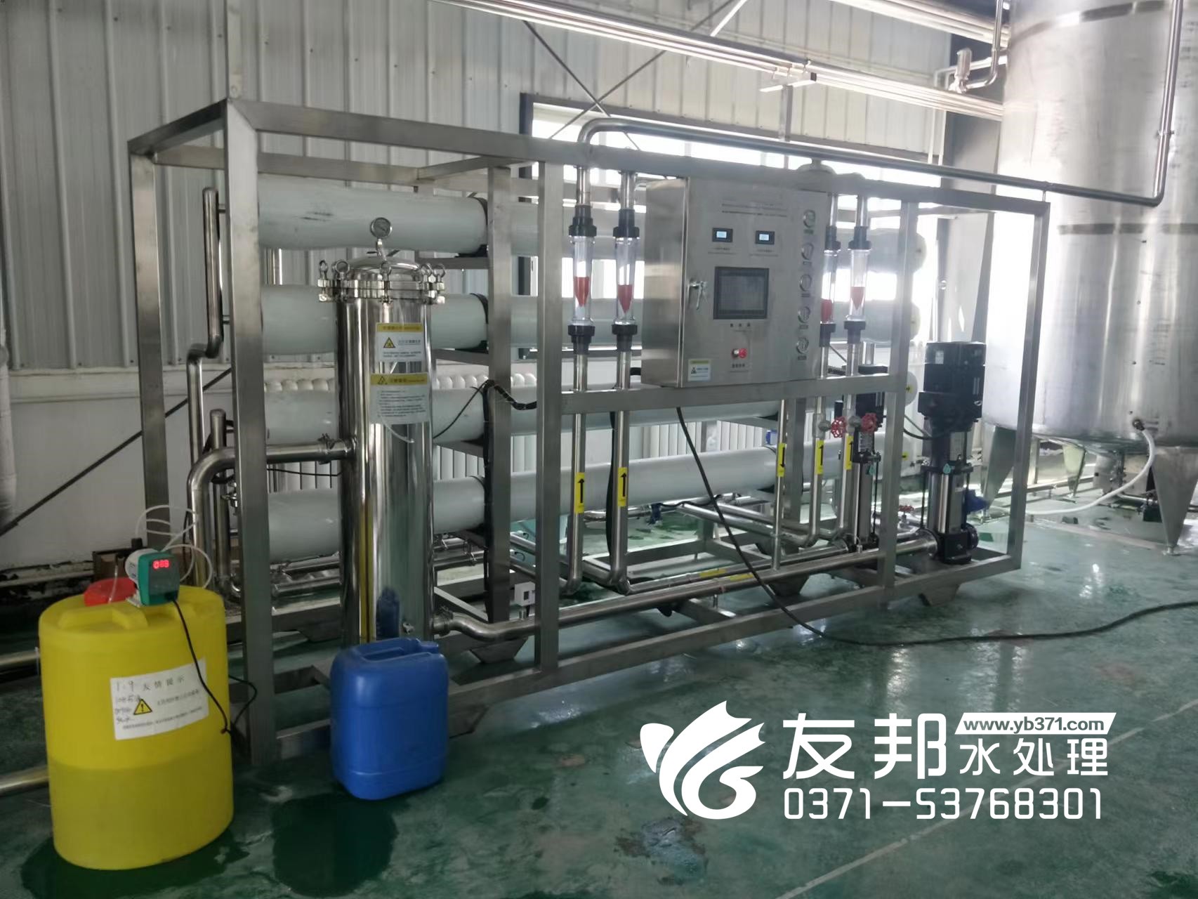 原水箱→增压泵→多介质过滤器→活性炭过滤器→加药装置→高压泵→反渗透→纯水箱