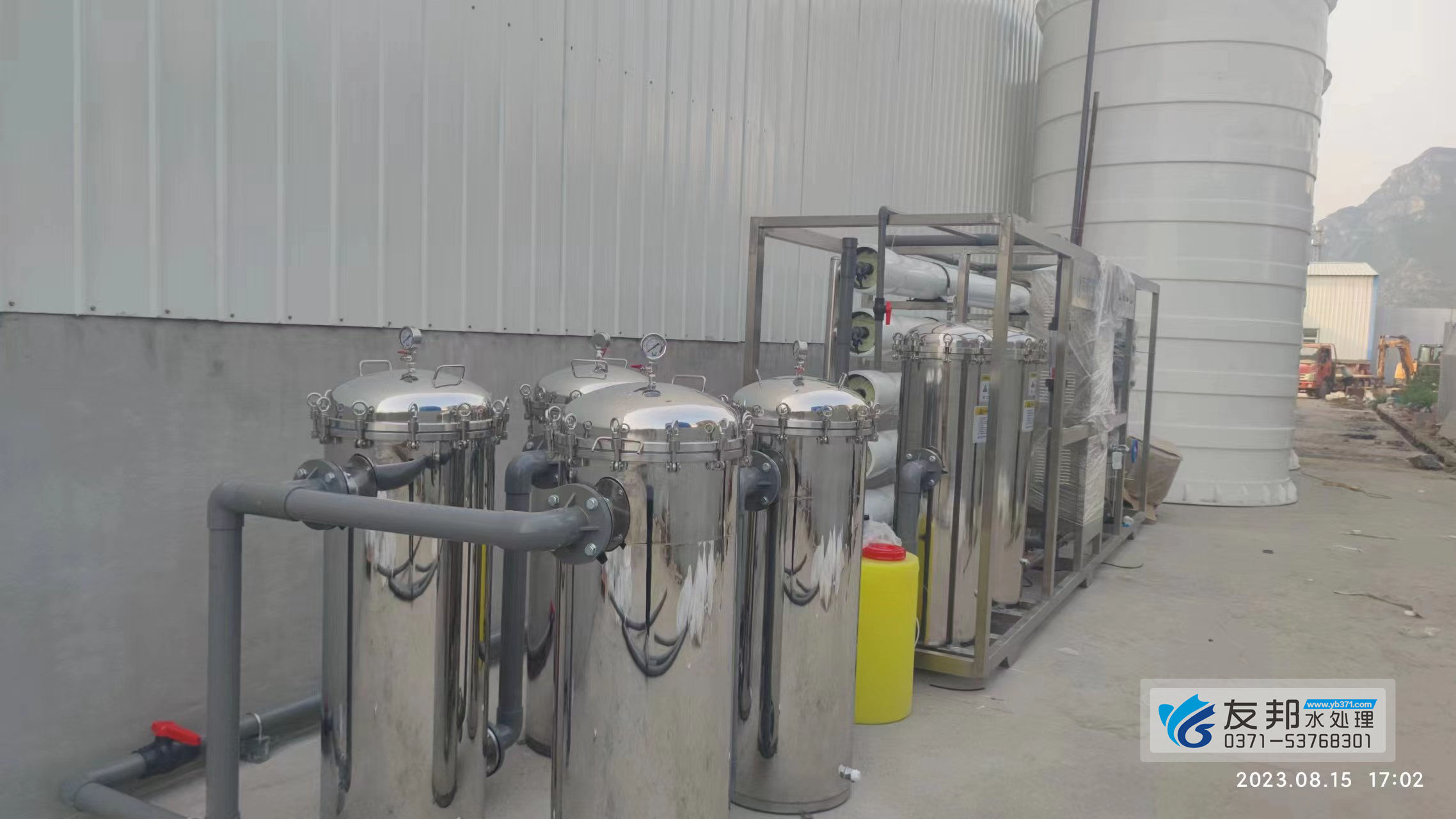 该设备采用一级反渗透工艺方式,是友邦为沁阳三惠耐火材料有限公司定制的一套工业纯水设备,该设备用于耐火材料的加工用水,其流程如下: