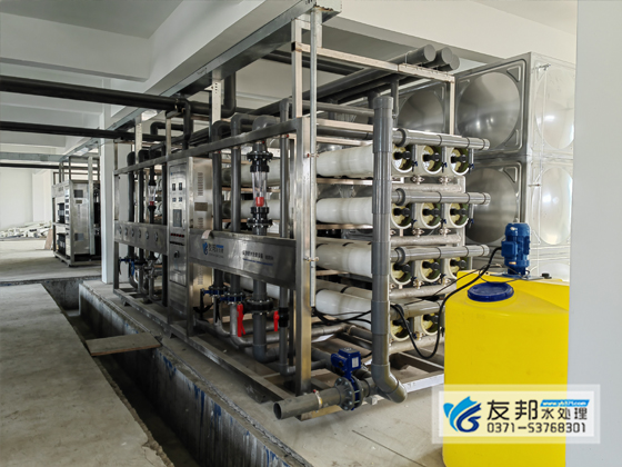 原水箱→增压泵→多介质过滤器→活性炭过滤器→加药装置→一级高压泵→一级反渗透→二级高压泵→二级反渗透→纯水储存系统→EDI超纯水系统→用水点