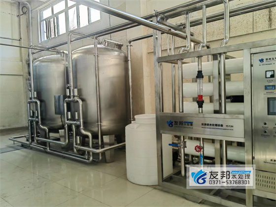 反渗透设备是采用膜法分离的水处理技术,是自然界中渗透现象的逆过程(对含盐水以外界推动力克服渗透压而使水分子通过膜的逆向渗透过程)。反渗透水处理工艺基本上属于物理脱盐方法,它在诸多方面具有传统的水处理方法所没有的优点。反渗透是在室温条件下,采用无相变的物理方法将含盐给水进行脱盐、纯化。目前,超薄复合膜元件的脱盐效果好,并可同时去除水中的胶体、有机物、细菌、病毒等。该设备是友邦专为河南五谷春酒业定制的,用于制酒用水。