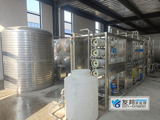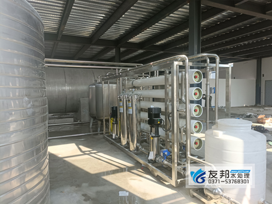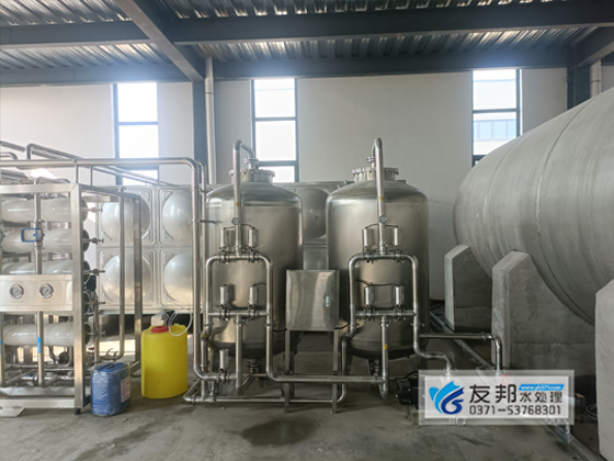 该水处理设备是食品加工时使用的,是友邦专为新郑豪士食品定制的。该设备采用双级反渗透工艺,管材管件全部为食品级304材质,用此产水做出来的食品色泽更美,口感更佳。