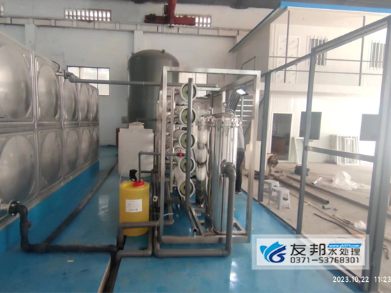原水先进入前置泥沙过滤系统,再进入反渗透除盐过滤系统,过滤后进入纯水箱(需方自备),以达到使用标准。