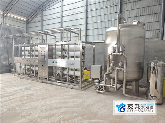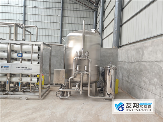 该水处理设备是食品加工时使用的,是友邦专为淇航冷饮加工定制的。该设备采用单级反渗透工艺,管材管件全部为食品级304材质,用此产水做出来的食品色泽更美,口感更佳。