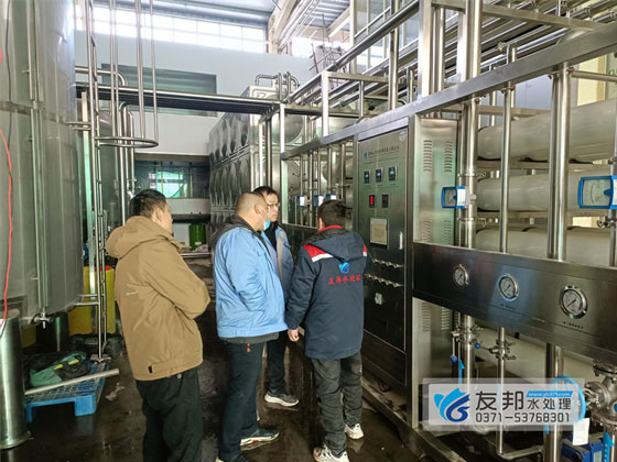 该水处理设备是食品加工时使用的,是友邦专为米奇食品加工定制的。该设备采用双级反渗透工艺,管材管件全部为食品级304材质,用此产水做出来的食品色泽更美,口感更佳。