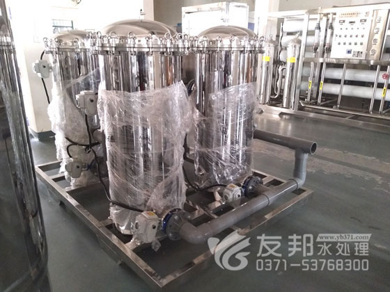 袋式过滤器的外观与精密过滤器的外观相似,只是大小不同,袋式过滤器主要应用在水质比较差的原水,它可以将原水中比较大颗粒的杂质去除掉。袋式过滤器主要分为三种,分别是单袋式过滤器、多袋式过滤器及夹层式过滤器。袋式过滤器主要应用在大流量的处理上,它的规格主要是从两个袋子到24个袋子,规格比较齐全,设备进出口的口径主要是在40-450mm之间,袋式过滤器的灵活性非常强,可以随时更换滤袋,简单方便。