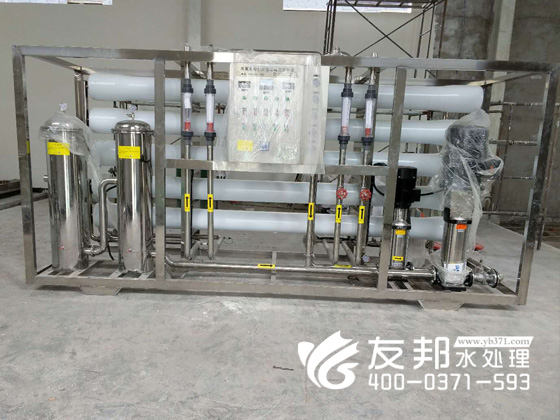 前置5μ微过滤器,保护高压泵及反渗透膜不受颗粒或其它硬物损坏。低压开关保护高压泵不会因供水停止而损坏。效率好、噪音低的高压泵,降低运行噪音,减少耗电。脱盐效果好,运行压力低的卷式复合膜提升了产水水质及降低运行成本,且使用寿命长。产水、浓水各设有流量计以监视并调节运行出水量及系统回收率。产水电导率表连续监视产水水质。进水及排水压力表,连续监测反渗透膜的压差,提示何时需要清洗。自动停水阀以避免停机时水继续流入。快速冲洗阀门定时冲洗膜表面。降低污染速度。