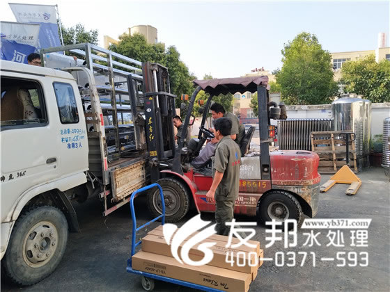 7月4日,发往一家化工厂的水处理设备从友邦库房发货了,今天