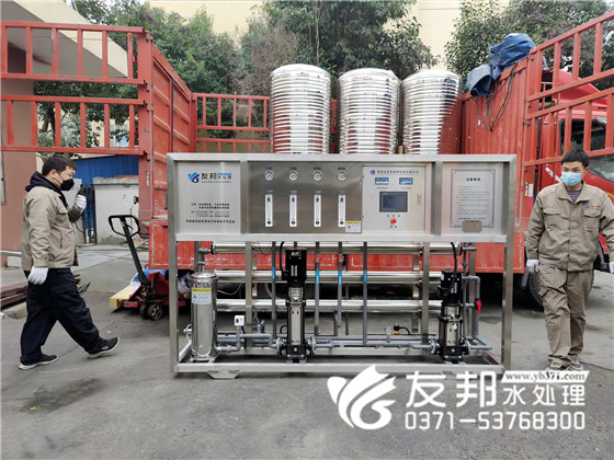 郑州友邦工作人员紧张有序的开始配货中,此套1吨反渗透设
