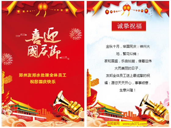 郑州友邦水处理全体员工祝您国庆节快乐
